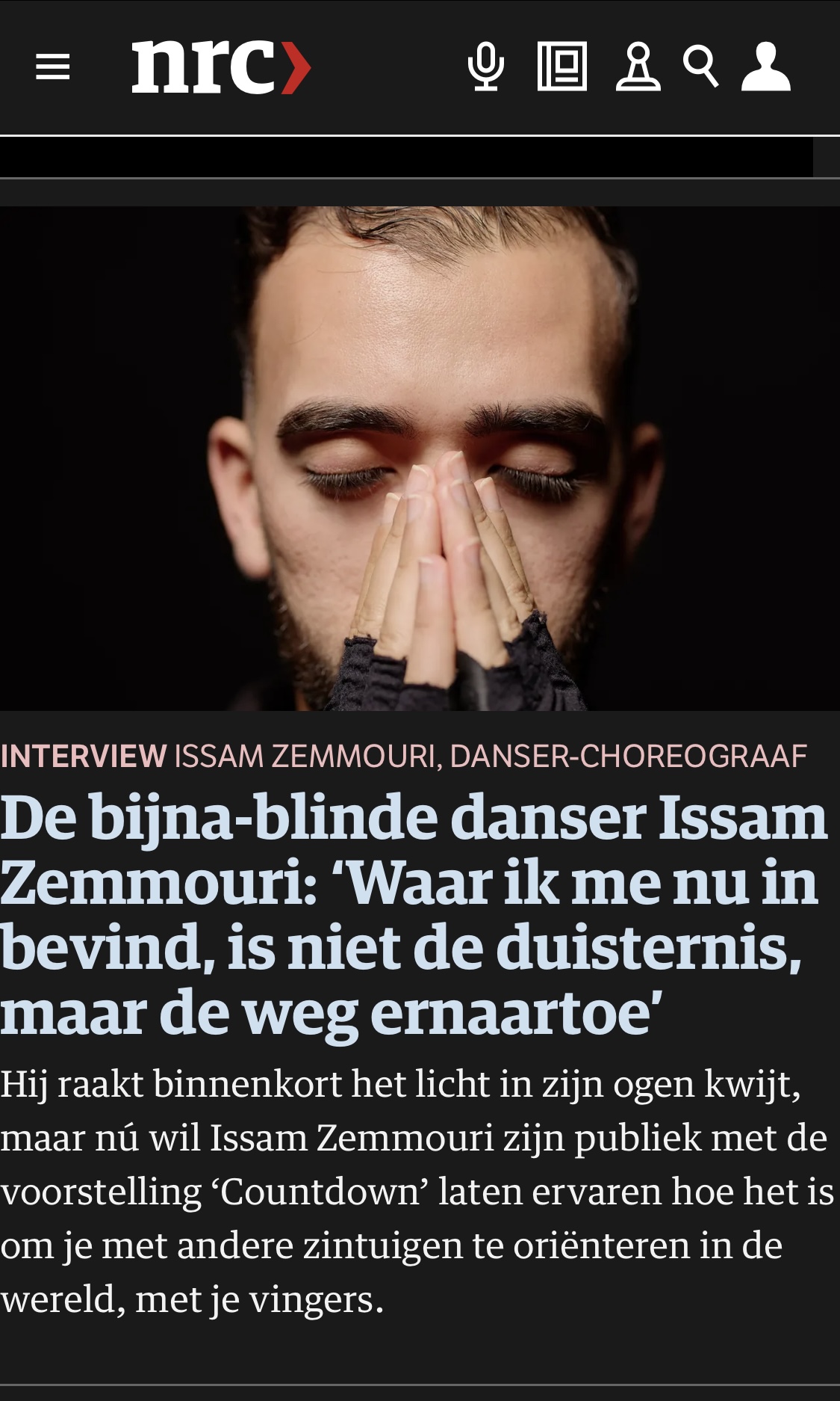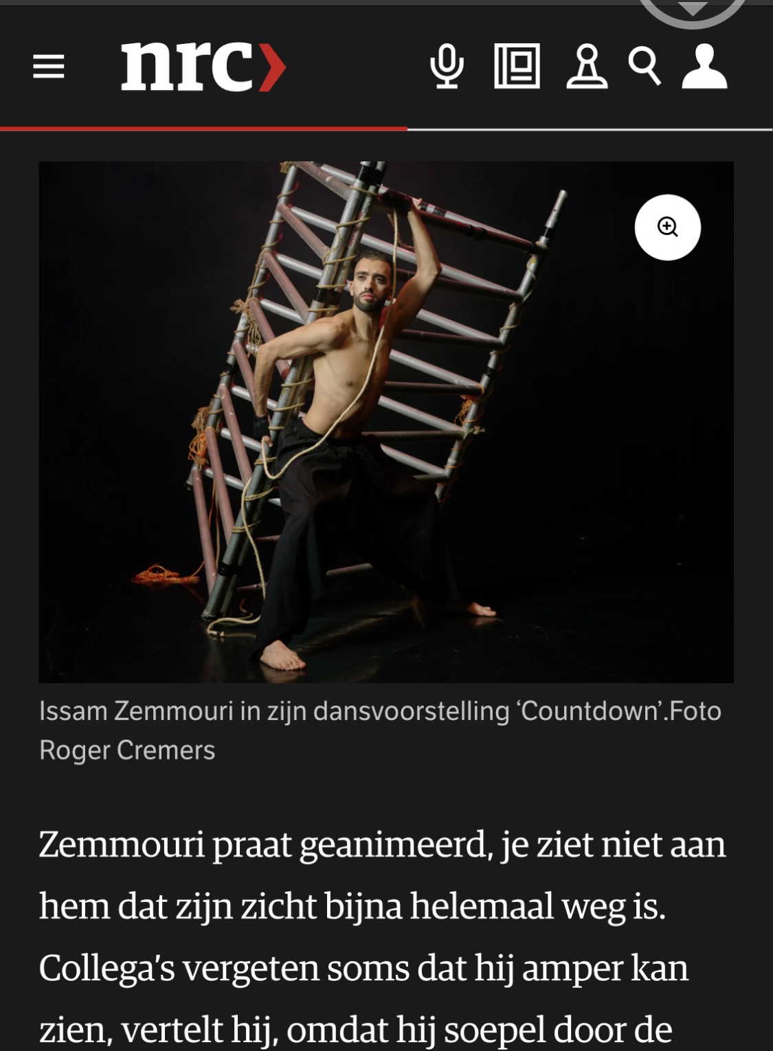 Via dans adresseert Zemmouri gevoelige onderwerpen waar woorden tekortschieten. Ondanks zijn in de loop der jaren ontwikkelde visuele beperking, zet hij alles op alles om zijn ambities waar te en is actief bij het ZID theater in amsterdam sinds 2019.